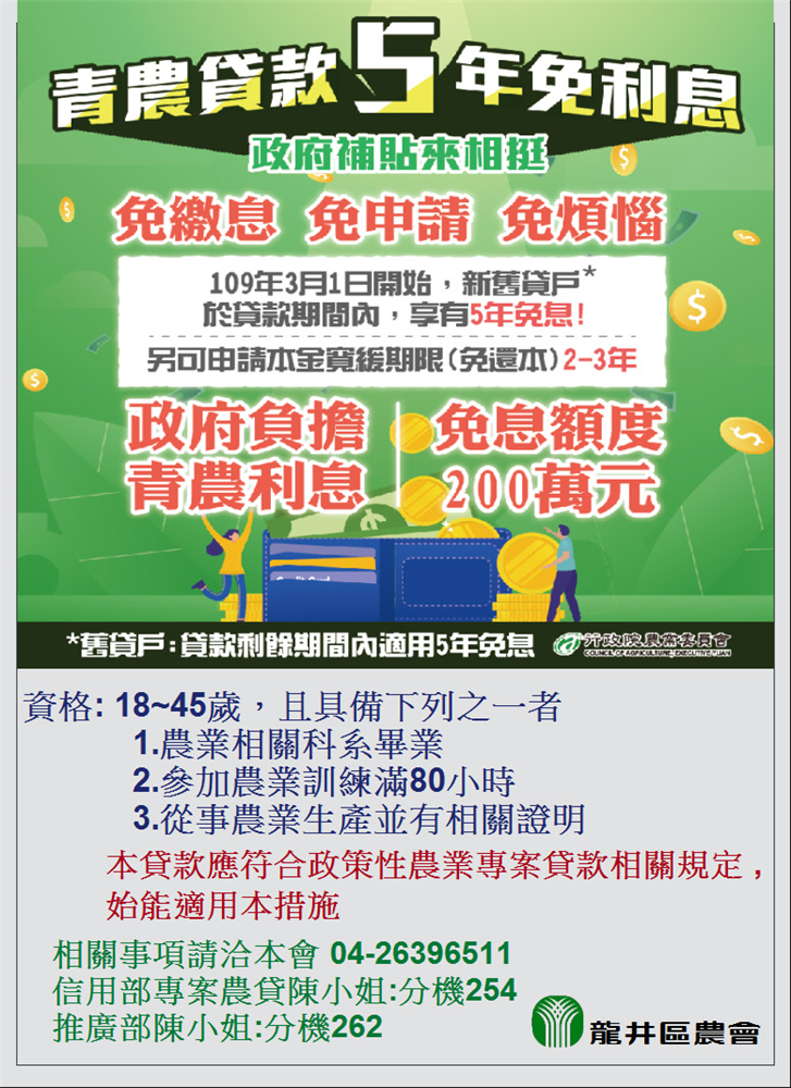 🌷信用部專案農貸:04-26396511#254