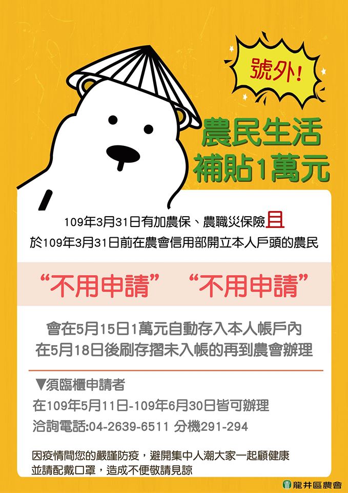 【農民生活補貼1萬元】