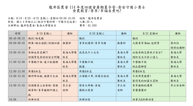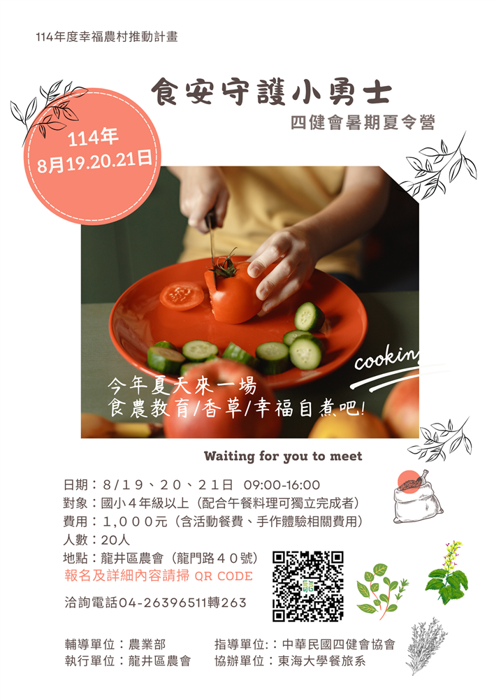 2025龍井區農會四健會暑期夏令營《 食安守護小勇士》【已結束】