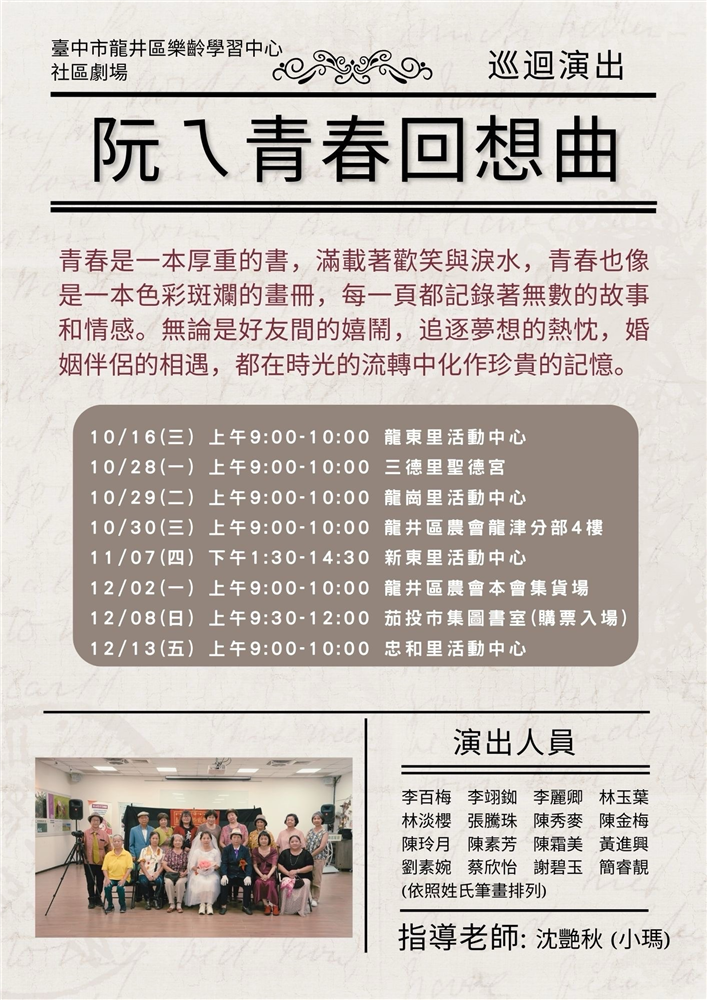 社區劇場–阮ㄟ青春回想曲 【已結束】