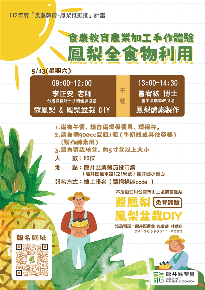 線上報名~2023食農教育農業加工手作體驗~鳳梨全食物利用